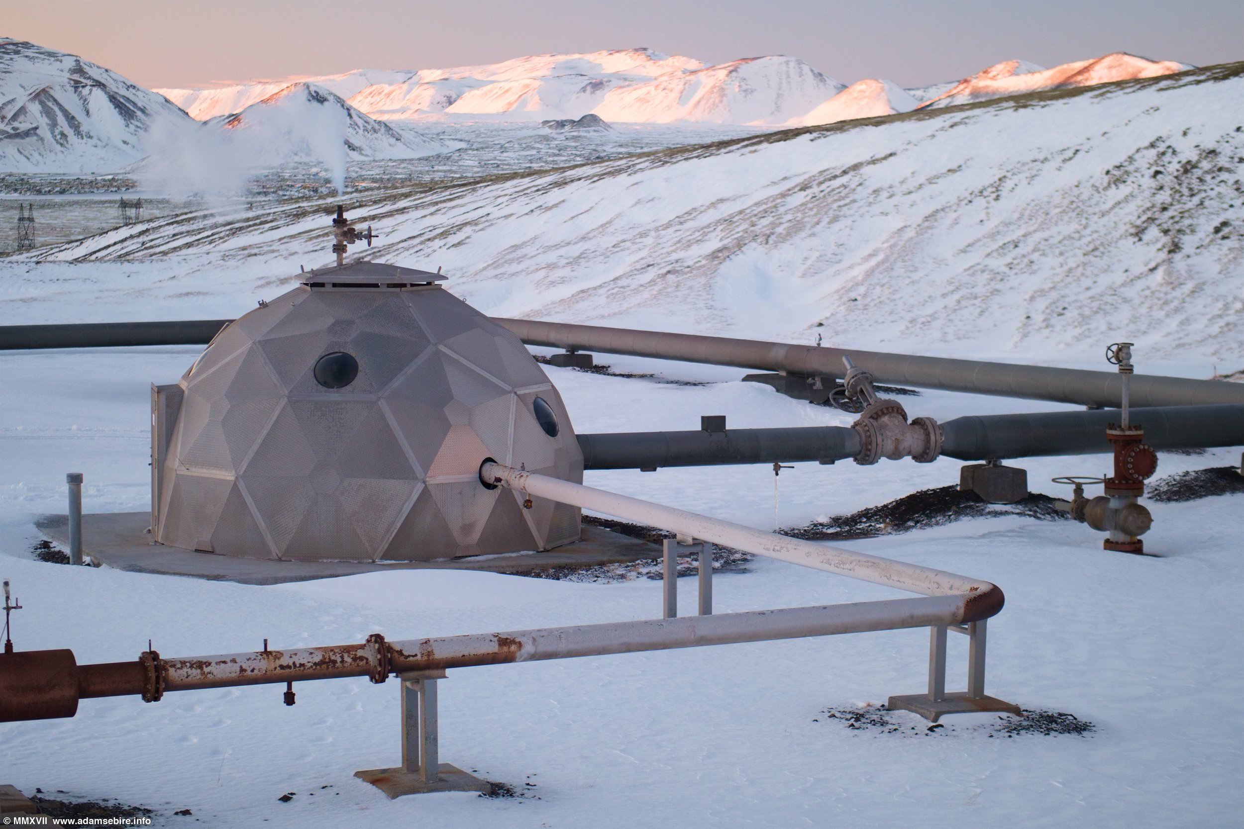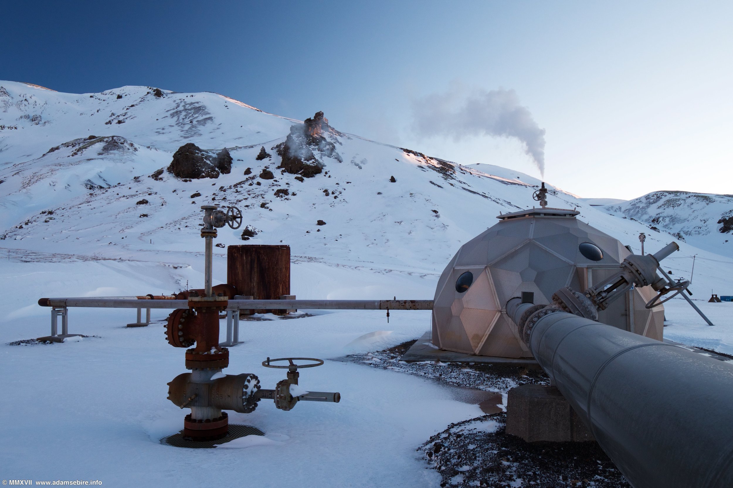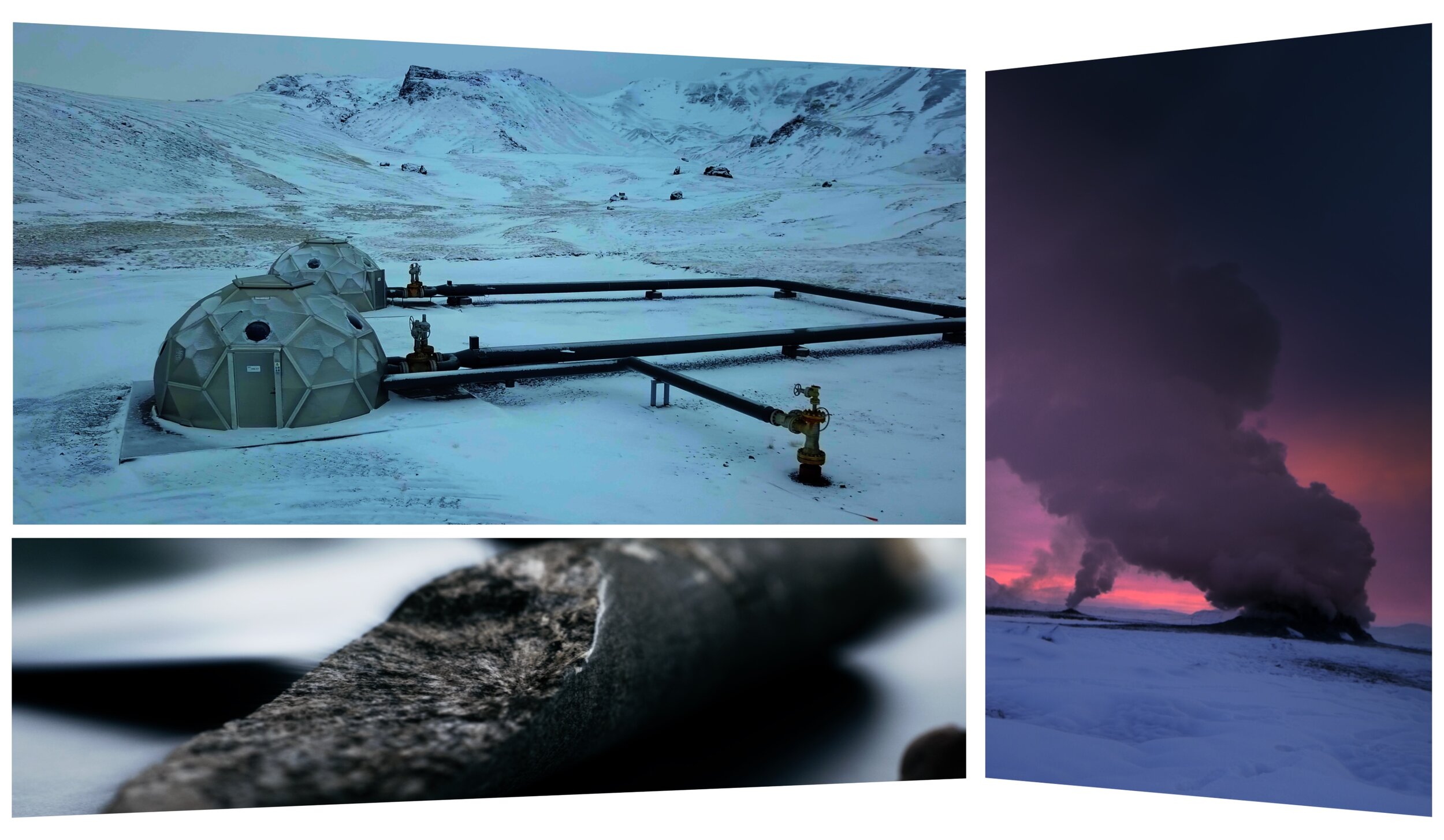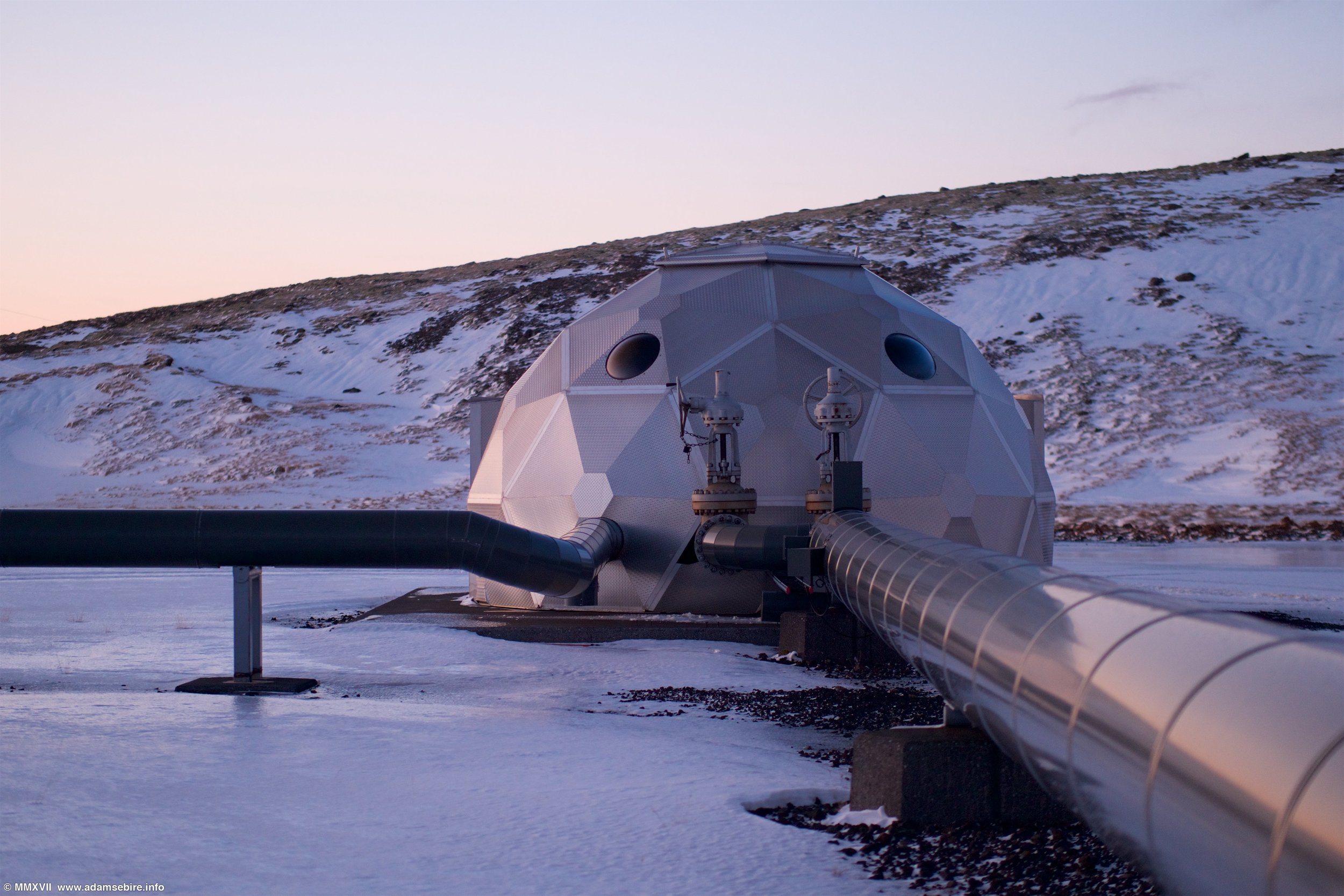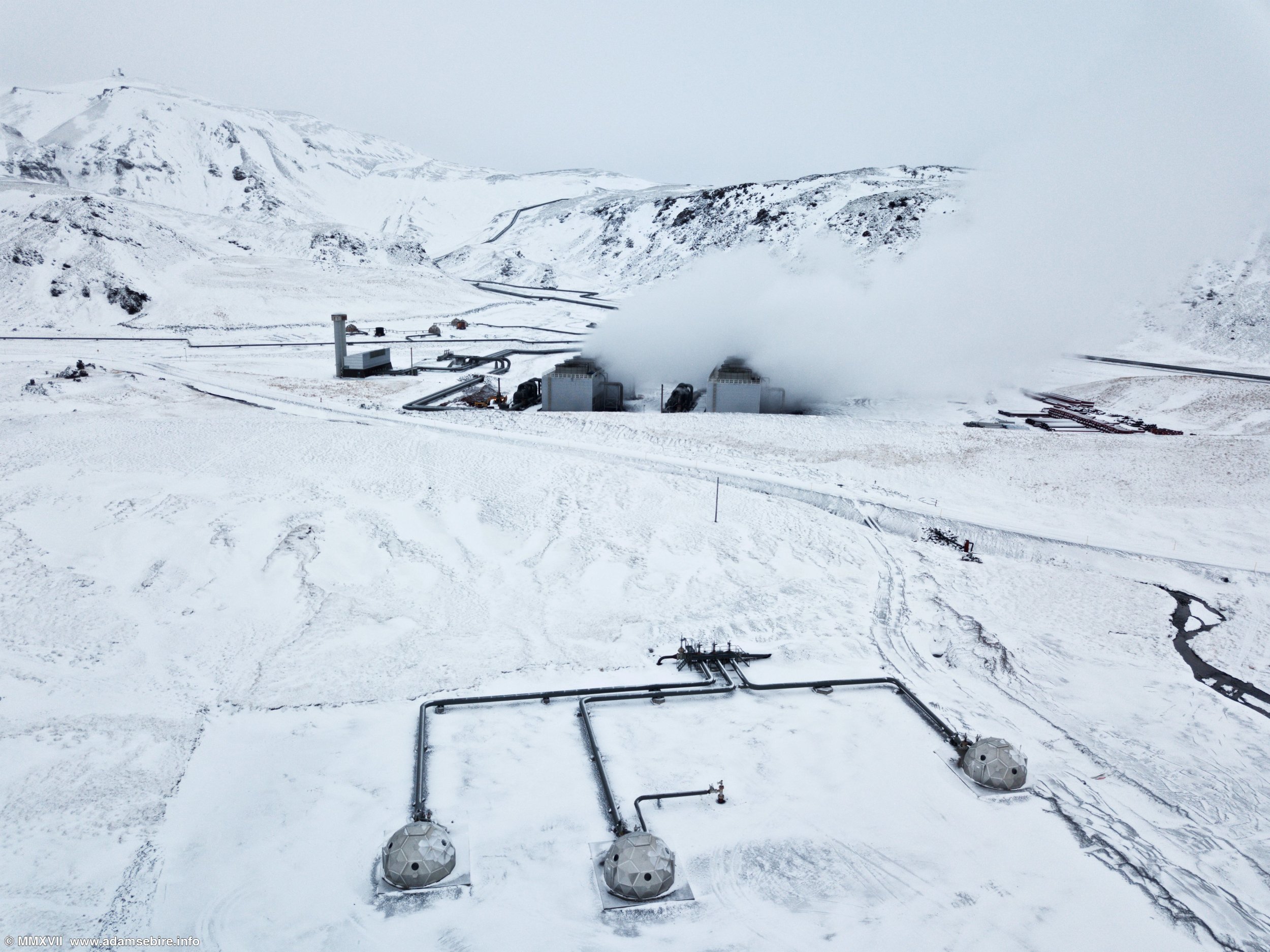 Since October 2017 Hellishei∂i’s other-worldly test site has been capturing carbon dioxide directly from the air surrounding Reykjavík’s geothermal power station: anthropogenic greenhouse gases are captured, dissolved and sequestered deep within the rock of an active volcano. (In 2021 the project was significantly expanded and codenamed “Orca”; already construction of “Mammoth” is underway.)