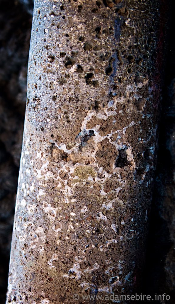 Video triptych, 2018 (revised Sept 2021). 3 HD screens (or 2 plus core sample in lit vitrine), 2.1 stereo audio.