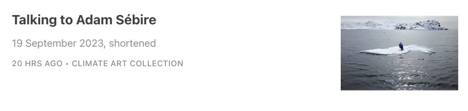 St. Andrews University’s Centre for Energy Ethics released a podcast with Adam discussing his AnthropoScenes series, art, ice, geoengineering and global warming on 26 March 2021. You can find it as a podcast at https://allaboutenergy.podbean.com or listen/download below. Interview runs 12’36”-56'45":
